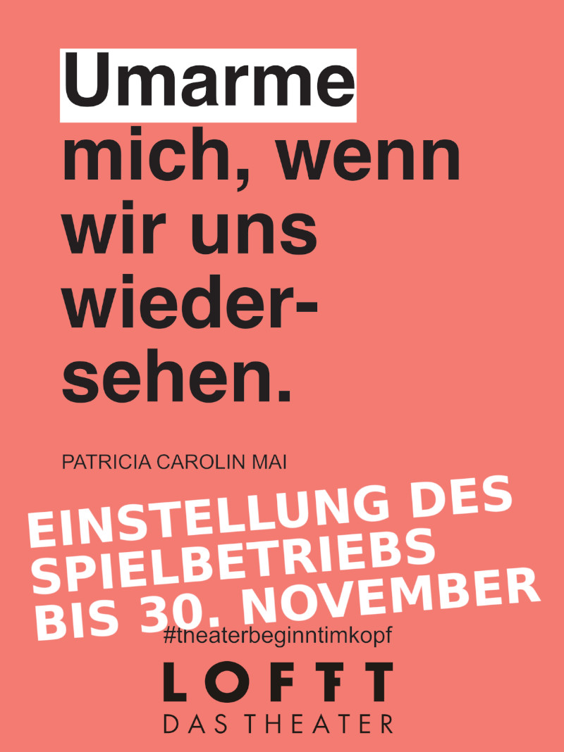 Wir beobachten – wie alle – weiter die Situation und hoffen, dass wir im Dezember wieder unter Beachtung unserer Hygienevorkehrungen spielen können. In Kürze informieren wir über unsere Online- und Ersatz-Formate. Wir sind wie gewohnt telefonisch und per E-Mail zu erreichen.
