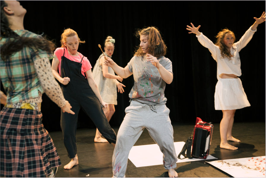 KONZEPT+INSZENIERUNG+CHOREOGRAFIE Irina Pauls PRODUKTIONSLEITUNG LEIPZIG Theresa Jacobs RAUM+KOSTÜME Ragna Heiny PERFORMANCE Johanna von Bibra, Magdalena Eidenhammer, Alina Feske, Sara Wilnauer, Viktoria Wirth MUSIK Elina Lautamäki, Sara Wilnauer, Dominik Leitner und DasCollectif LICHT Christopher Corsmann, Patrick Steinhuber FOTOS Ragna Heiny, Lukas Beck