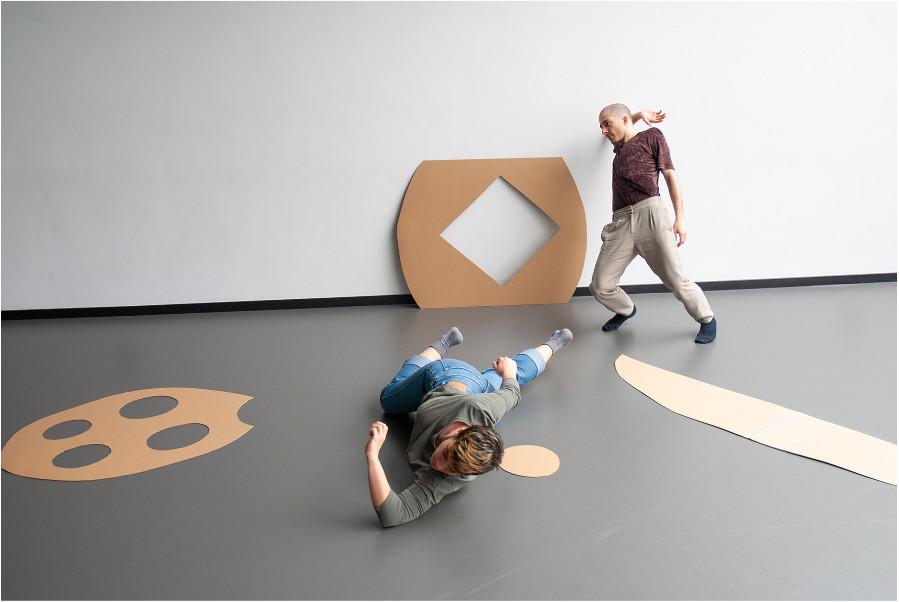 Im intermedialen Projekt POTATO PRINT DANCE überführen f_man gemeinsam erstellte Kartoffeldruckgrafiken in Bewegung. Entstanden sind sie aus einer Drucktechnik, in der rohe und in Form geschnittene Kartoffeln als Druckstempel verwendet werden. Die Kartoffeldrucke dienen als Notationen und Raumpläne zu den Bewegungen. Es werden Übersetzungen und Systeme entwickelt und erkundet, wann diese praktikabel sind, wann die Performer*innen an Grenzen stoßen und wie sie damit umgehen.
