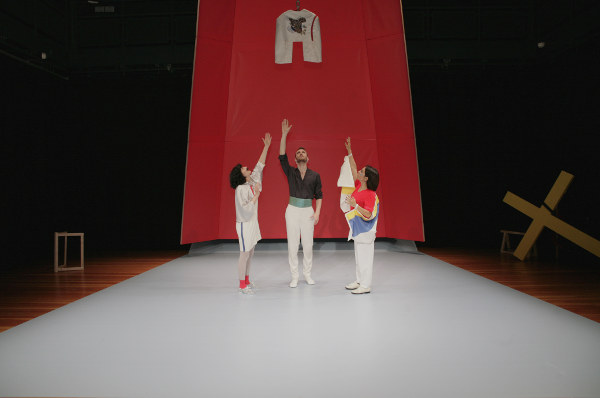 Der ‚Traum einer Sache‘ zeigt drei Tänzer, die in ekstatischer Ernsthaftigkeit und mystischem Größenwahn anstelle der faktischen Realität, die Beziehung zu einer vollkommenen Illusion ins Zentrum ihrer Bewegungen stellen. Der Tanzabend paart Anmaßung und Zärtlichkeit und beschwört eine Wirklichkeit, in der es keinen Zweifel an Sinnhaftigkeit gibt. Wie viel Pathos, wie viel Größenwahn und wie viel Utopie verträgt unsere Wirklichkeit? Im Rückgriff auf prominente Motive und Gesten (von Auferstehungsszenarien über Gesten aus der Opernwelt bis hin zur großen Filmmusik) fragt das Stück nach der Aktualität und Dringlichkeit von Utopie und Pathos heute.