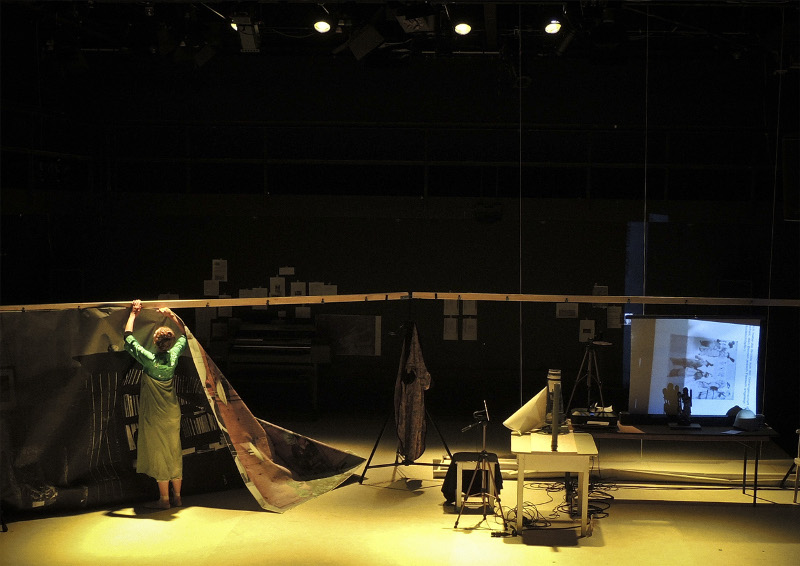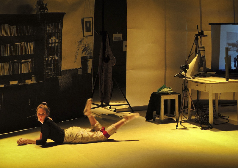 Das Setting dafür bildet die illusionistische Papiertechnik von Hannah Dörr, bei der vor zweidimensionalen Papierdrucken, auf denen dreidimensionale Räume abgebildet sind, gespielt wird. Die Kongruenz von Zeit und Ort löst sich auf, die Vergangenheit erhält eine Zukunft im Möglichkeitsraum filmischer Bilder und erfährt eine Aktualisierung durch den Körper der Performerin.