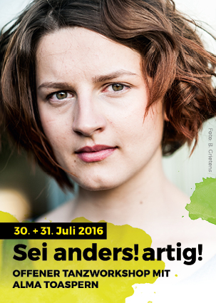 Unter dem Motto SEI ANDERS! ARTIG! gibt Alma Toaspern ein Tanztraining und Warm-up auf Basis ihres neuen Tanzstücks THE STRANGER QUESTION.