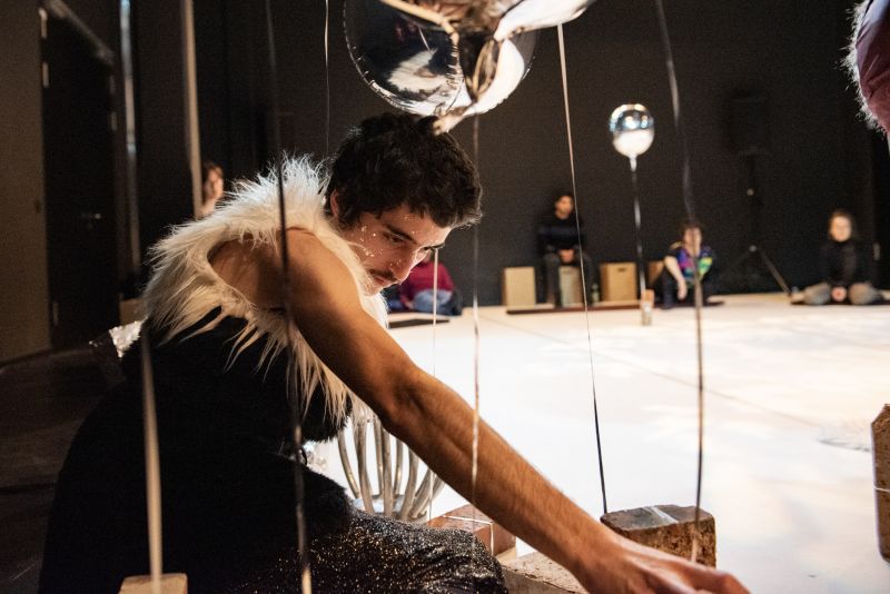 Existenzielle Sorgen rufen unangenehme Gefühle hervor. Die Vorstellungen, die daraus entspringen, besetzen unser Gehirn auf einer Ebene, wo sie sich zu verwirklichen scheinen. Gemeinsam mit den Performer*innen nähert sich Choreografin Clara Sjölin mit ihrem "verzweifelten Brainchild" dem Skurrilen und Seltsamen in einer spielerischen und multimedialen Arbeit an. Sie erschafft fremde Kreaturen und Bilder, die uns den Eintritt in diese Welt ermöglichen.