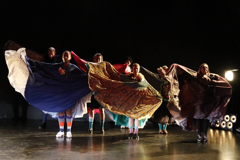 Mit FOLK FICTION entwirft die Sebastian Weber Dance Company ihre eigene Vision einer kollektiven Identität und lässt sie in einer imaginären Folklore real werden – gleichzeitig raffiniert und archaisch, frech und feierlich, mit Pomp und Poesie und der ganzen Kraft einer verschworenen Gemeinschaft. Frei erfunden, aber radikal wirksam, findet das Stück seine Antworten im Hybriden, Irritierenden, ständig Bewegten.