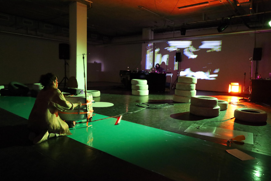 Wie kann ein Archiv lebendig werden? Kann es zu einem Zeitloch werden, durch das hindurch wir in neue Zukünfte steigen können? Zwischen Projektionsflächen und Autoreifen untersuchen Salma Said und Miriam Coretta Schulte das subversive Videoarchiv 858 der Ägyptischen Revolution von 2011 und die Potentiale choreografischer Mnemotechniken. Begleitet von Videos der Künstlerin Jasmina Metwaly und dem Sound der Musikerin Leila Moon, reisen sie mit dem Publikum durch Zeiten und Räume.