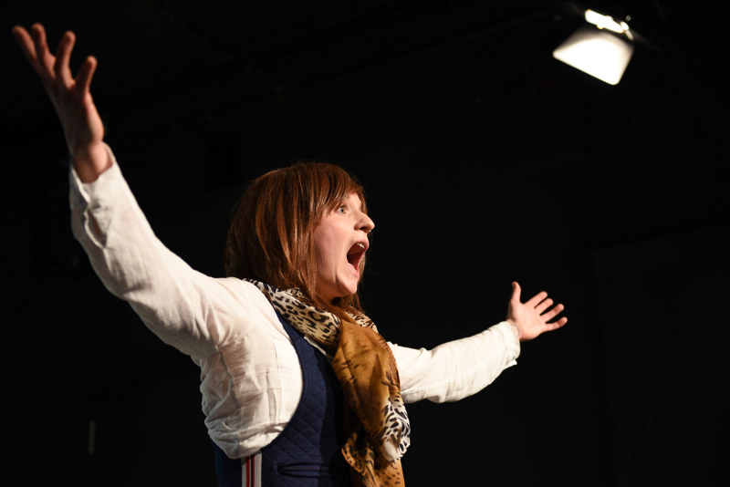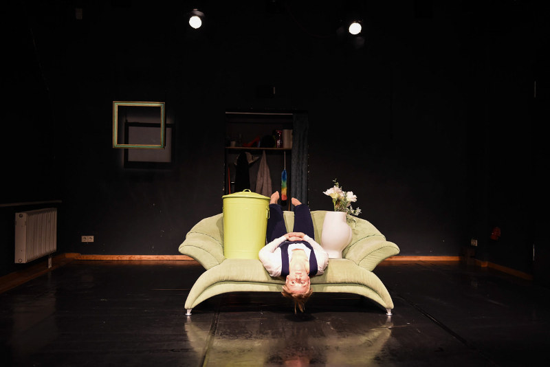 Bitte Schuhe ausziehen! Gerüstet mit Staubwedel, Raumspray, Statistiken und Feudeltipps tanzt, singt und schrubbt sich eine Schauspielerin durch die Bühnenlandschaft aus Möbeln und Alltagsgegenständen auf der Suche nach Ordnung und Chaos. An ihrer Seite: eine Bestsellerautorin, die geplagte Messies zur Bändigung der äußeren und inneren Unordnung berät; ein Zimmermädchen mit dunklen Obsessionen; und eine Mutter, die hin und hergerissen zwischen Kindern und Karriere versehentlich auch mal den Putzlappen in die Pausenbrotdose packt.
