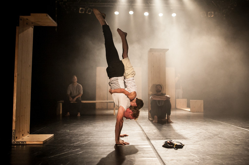 Die fünf Erwachsenen und der Junge sind keine wirklichen Verlierer. Sie sind auch keine gewöhnlichen Zirkusmenschen: WALLS AND HANDBAGS ist Akrobatik und Tanz auf höchstem Niveau.
