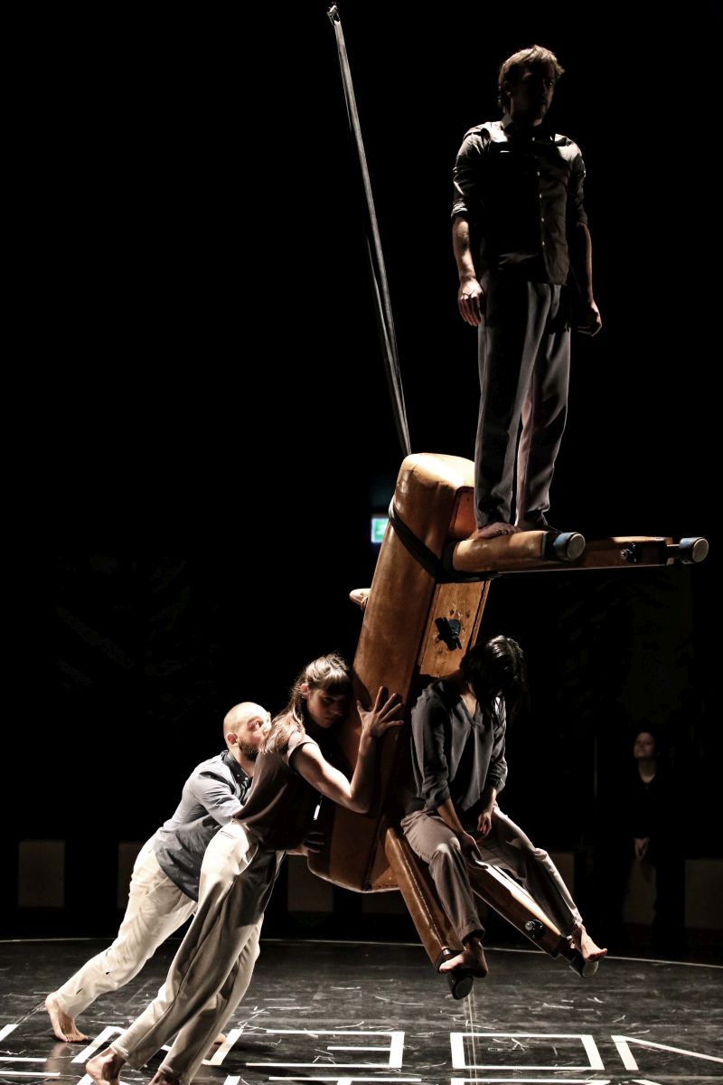Die Jurybegründung für SURROUND: "Alle versuchen, sich dem Pauschenpferd gegenüber zu positionieren, das als Pendel durch den Raum schwingt. Der Kopf weiß: Die Gesetze der Physik lassen sich nicht außer Kraft setzen. Der Bauch ahnt: Es gibt keine Sicherheit. Das fasziniert, macht Angst, erfordert Mut. Die zwei Akrobaten und zwei Tänzerinnen von Overhead Project entwickeln in dieser außergewöhnlichen Raumsituation ebenso außergewöhnliche tänzerische Muster, bewegen sich um die Mitte, formen das Publikum und liefern es den unheimlichen Kräften aus."